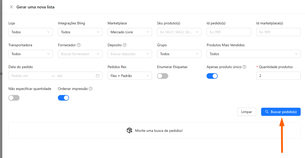 3. Preencha os filtros da lista conforme sua necessidade, e clique em “Buscar pedido(s)“.