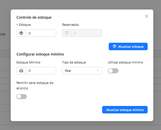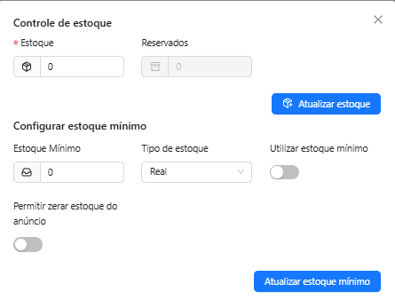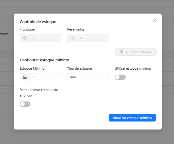 - Definir se o estoque será Real ou Mínimo.