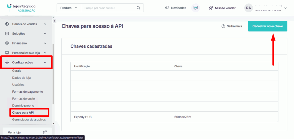 Geração da Chave API – Loja Integrada