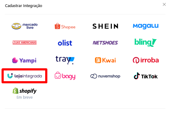 3. Agora clique no logotipo da “Loja Integrada”.
