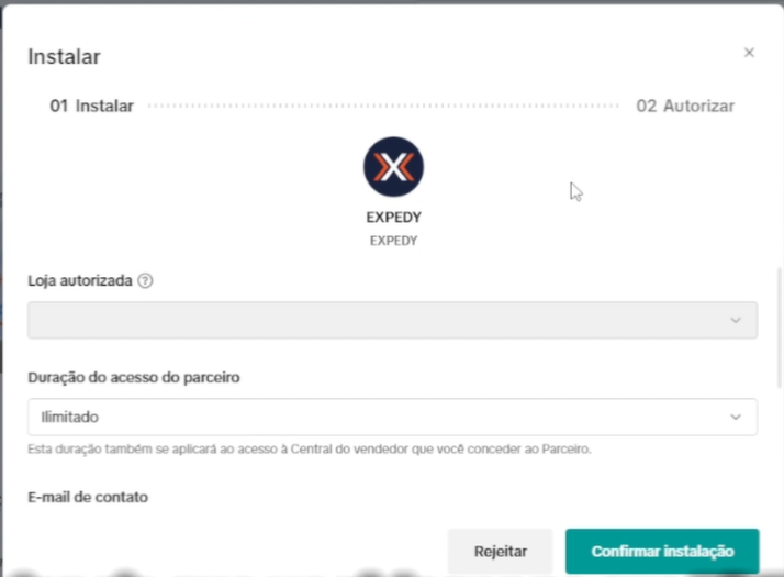 7. Ao retornar a página da EXPEDY, coloque o nome que você deseja na integração, e faça a configuração da integração.