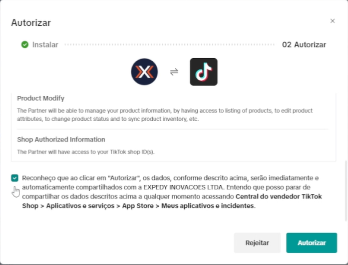 5. Caso sua conta já esteja logada, você será direcionado diretamente para a etapa de autorização.